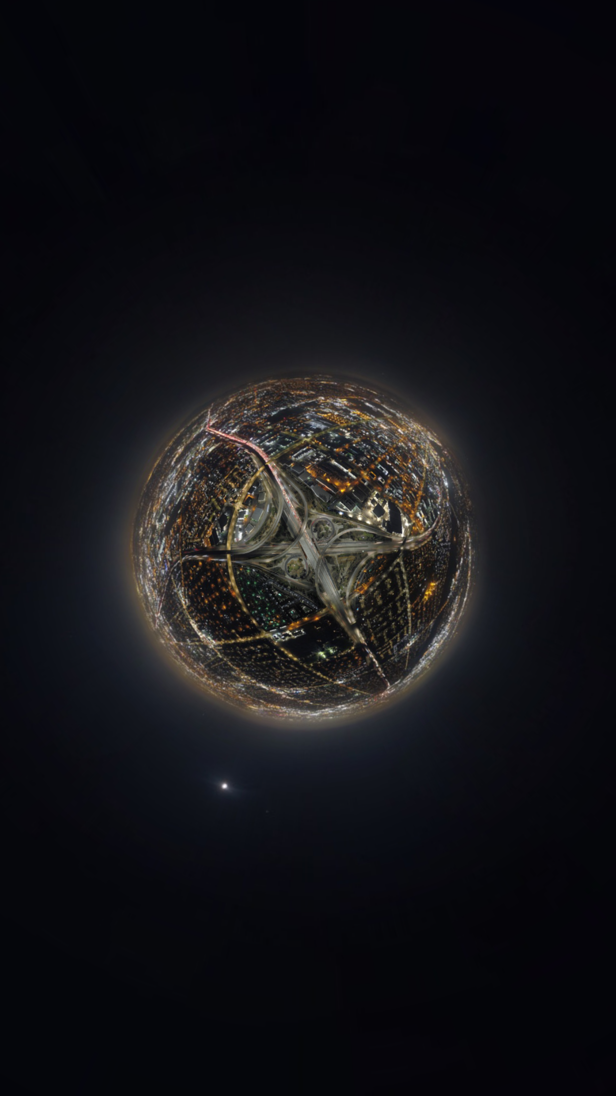 Spherical perspectives of the same place at night and day... in a way they express the two worlds we experience everyday but from a look from above.